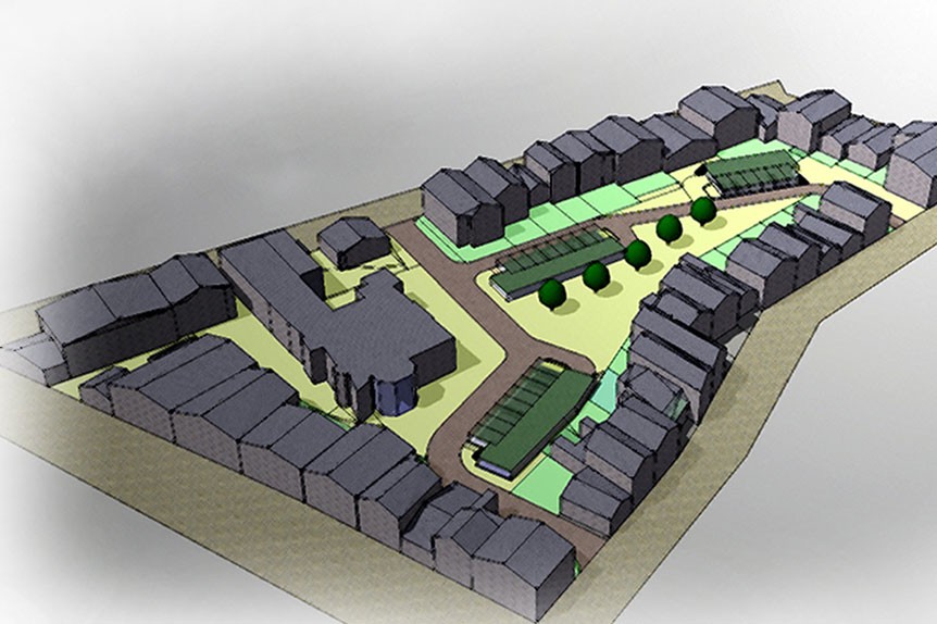 Ce projet propose une recomposition urbaine à l’échelle de l’îlot. Il intègre le stationnement en cœur d’îlot par la création de trois voies nouvelles. Les places de parking sont aménagées dans des blocks fermés en demi sous sol dont les terrasses sont accessibles et végétalisées. L’accroissement des surfaces habitables repose sur une extension verticale de deux niveaux supplémentaires, construite en retrait. Le projet intègre le volume de la cave ainsi qu’une construction nouvelle sur l’arrière. Il ne conserve de l’échoppe d’origine que sa façade sur rue.